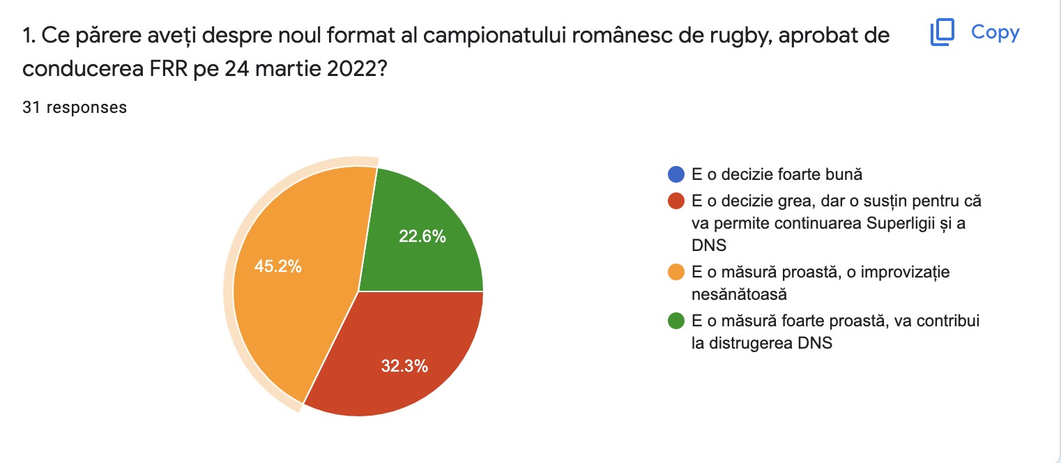 În urma discuțiilor cu cluburile participante la Campionatul Național de rugby 7 masculin, legate de reluarea competițiilor în contextul situației epidemiologice existente și obligativitatea respectării protocolului comun al Ministerului Tineretului și Sportului și Ministerul Sănătății, Federația Română de Rugby a decis înghețarea campionatului.